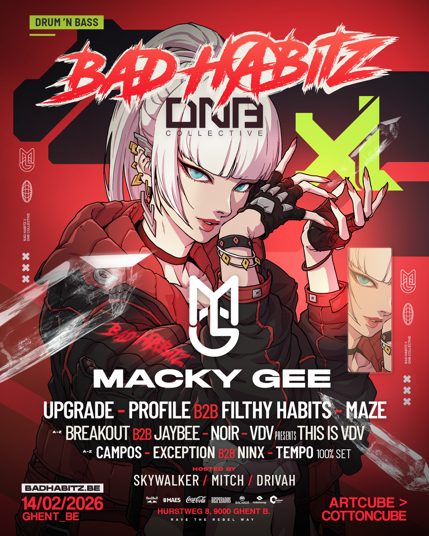 On 14 February 2026, Drum and bass legend Macky Gee returns for this massive gathering that you don’t want to miss. BAD HABITZ joins forces with DNB Collective for an XL Valentine’s takeover at the Cottoncube.